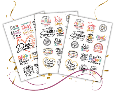 Con este set de stickers decorativos con frases bíblicas, íconos femeninos y mensajes de fe, puedes personalizar tu devocional o tu planner y hacer de cada página una experiencia creativa y espiritual.